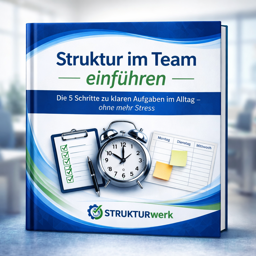 Mit dem Guide „Struktur im Team einführen“ bekommst du ein einfaches, sofort umsetzbares System, mit dem du: