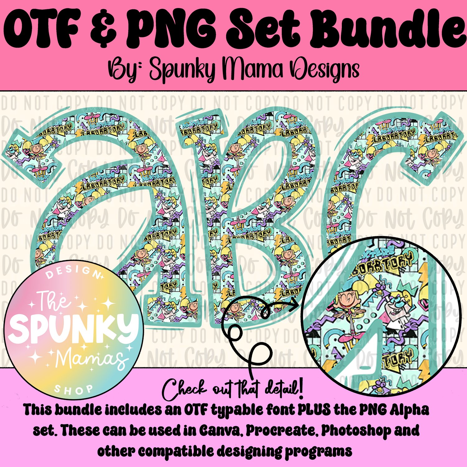 Retro Dexter Laboratory OTF Font & Digital PNG Alpha Set