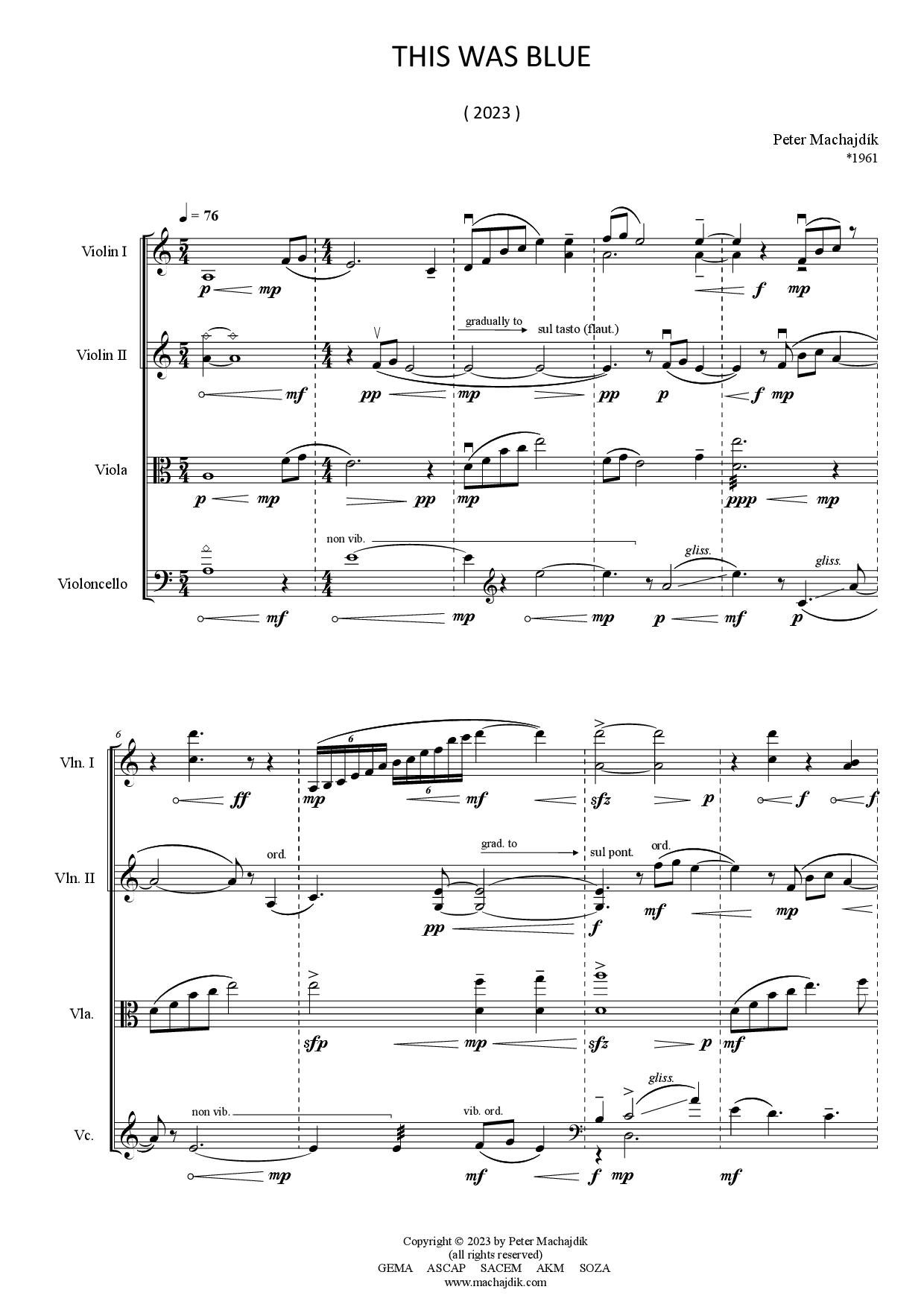 Peter Machajdík: THIS WAS BLUE for string quartet