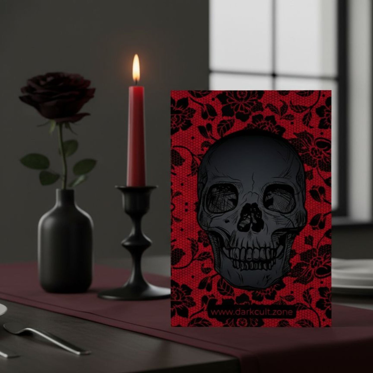 Red Lace Skull Card