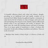 “A beautiful collection—awash with colour and vibrancy, thought-provoking on an intellectual level, and equally evocative on an emotional level. Shloka Shankar has gathered together a community of artists that has the feel of family. In a duet of imagery and words, with each participating artist and poet in turn, Shankar explores selfhood and identity—what is true and authentic and worthy of attention. The poetry soars, the visuals lift, unveiling nuances and layers of meaning. There is an innate quality of intuitiveness to them, a liveliness that transcends. I’m left with a feeling of joyfulness and resilience. These are works of survival.”