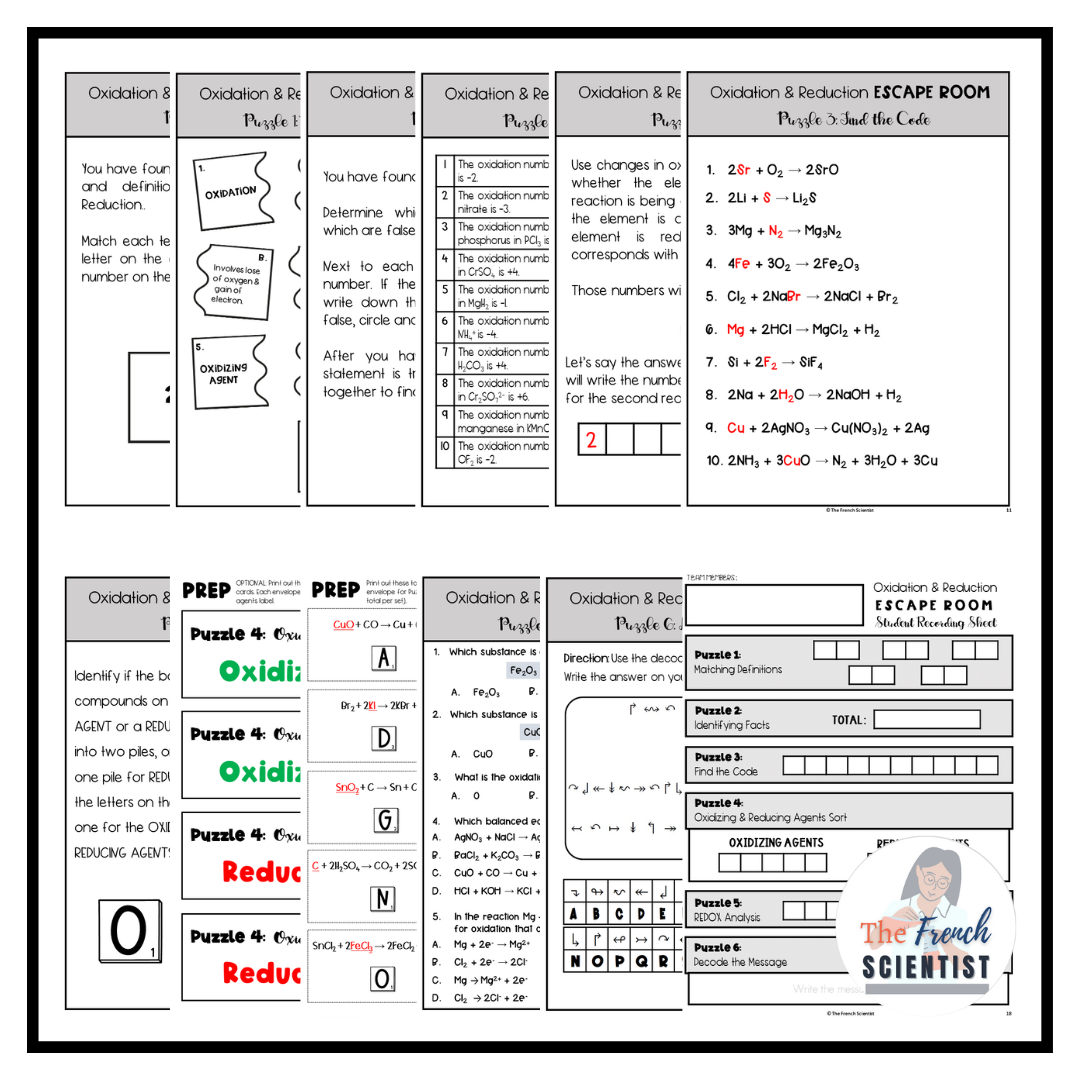 CHEMISTRY REDOX Oxidation & Reduction Escape Room Activity