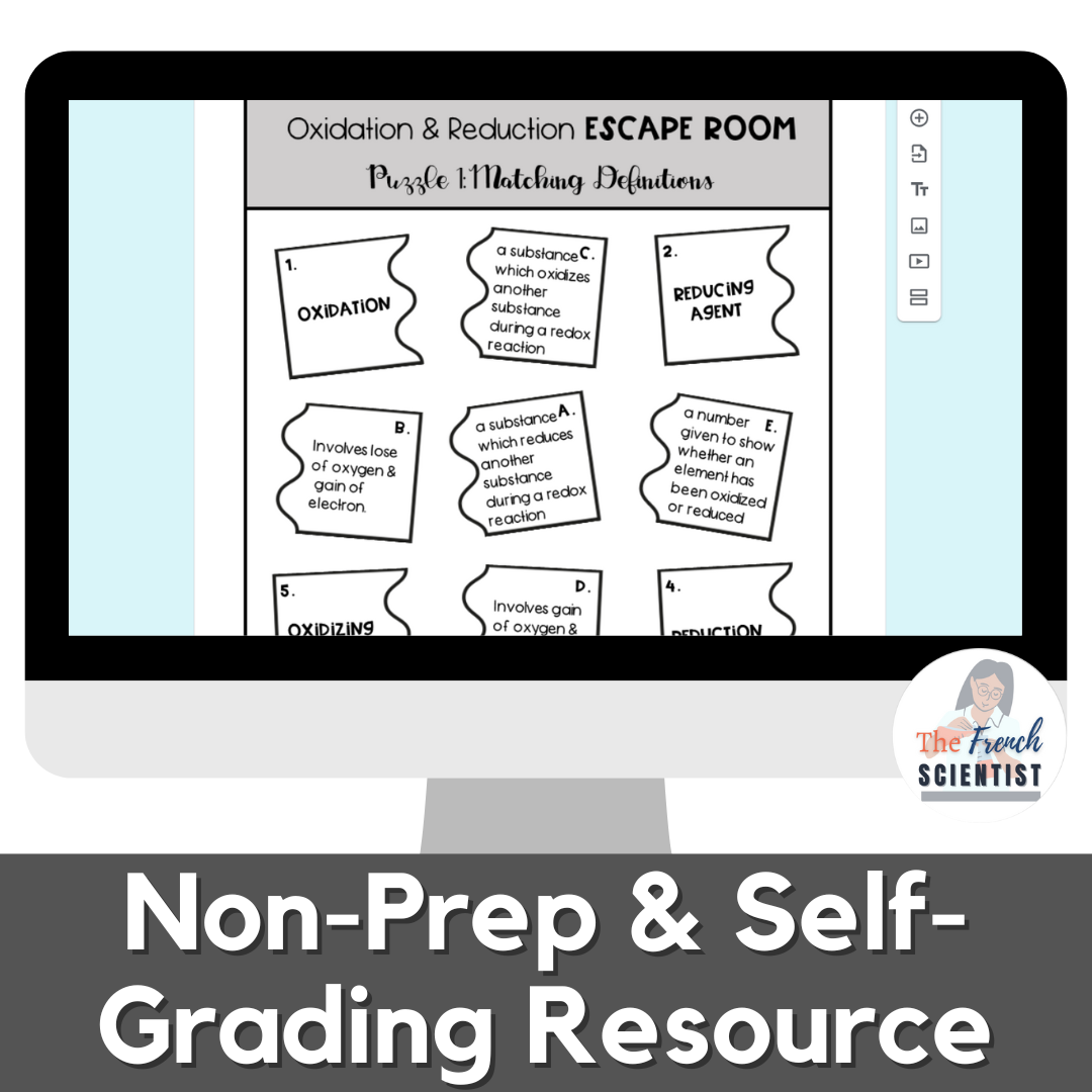 Looking for an engaging activity to teach REDOX Oxidation & Reduction in class? This product includes an escape room activity which is a great resource intended to reinforce students' understanding of the topic of REDOX as a part of the warm-up, review tasks, or end-of-year activities.