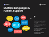O ChatNet vem com um gerenciador de idiomas e tradução integrado . Você pode adicionar seus próprios idiomas e traduções com eficiência. O ChatNet é traduzível para qualquer idioma, incluindo idiomas RTL . Ele suporta qualquer conjunto de caracteres Unicode.