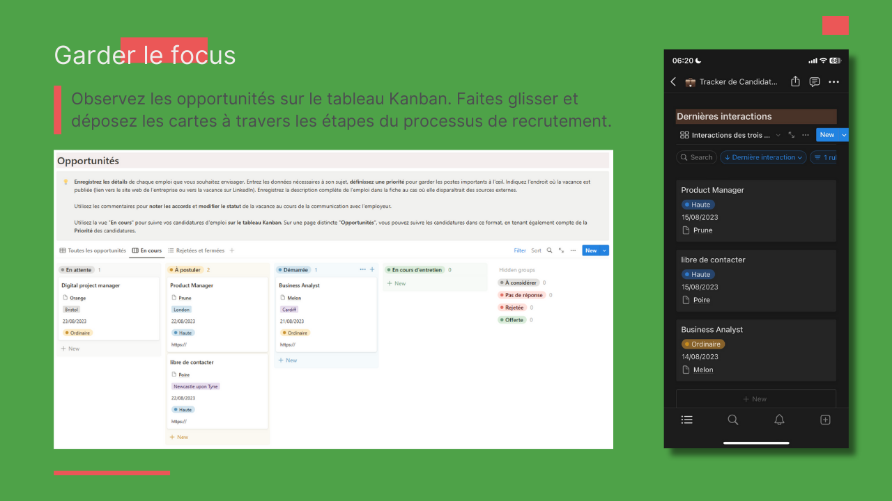 Suivi des Candidatures d'Emploi (Modèle Notion)
