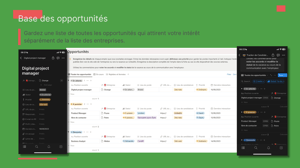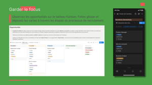 - Suivez les opportunités par étape sur votre tableau Kanban à mesure que vous interagissez avec les entreprises et faites-les avancer facilement.