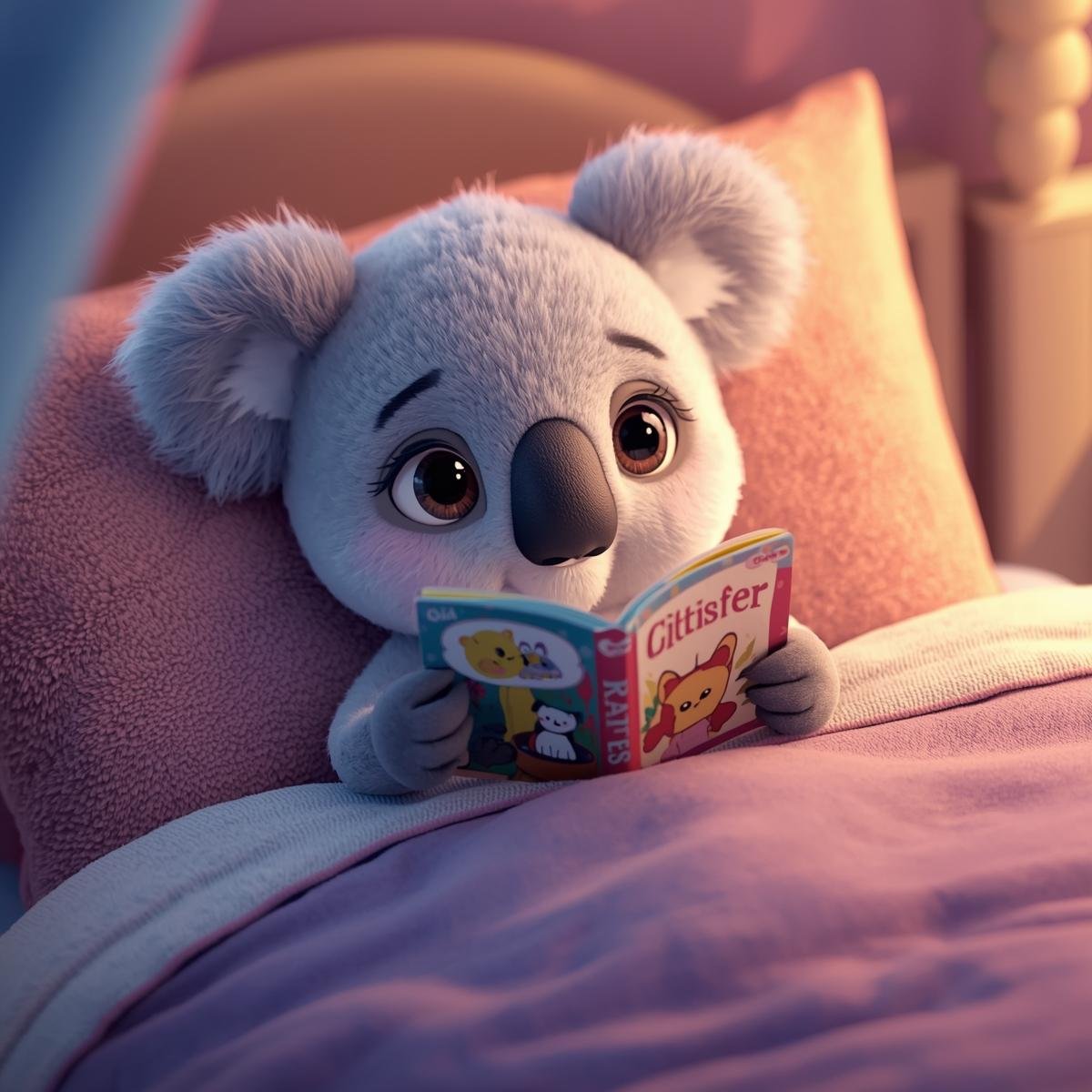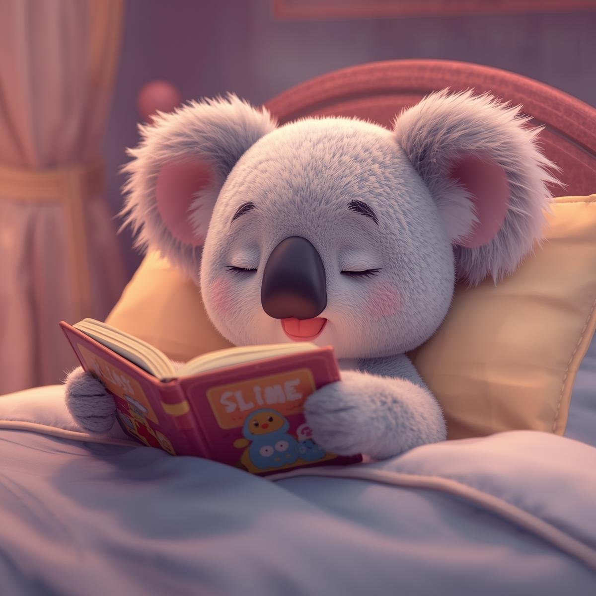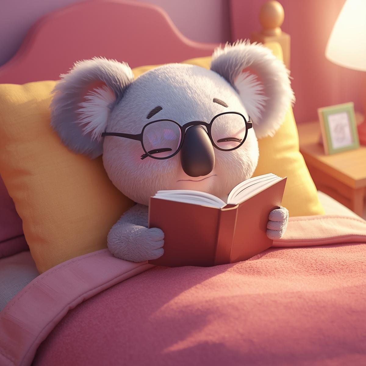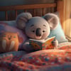 Create a calm, comforting atmosphere with this gentle digital art collection featuring an adorable koala peacefully reading in bed. Soft lighting, warm tones, and a cozy bedtime setting make these images perfect for encouraging quiet moments, reading routines, and a love of books.