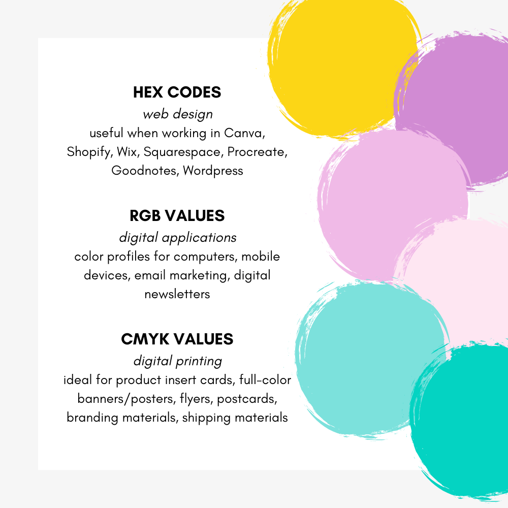 + Detailed Hex Codes, RGB, and CMYK values for each color
