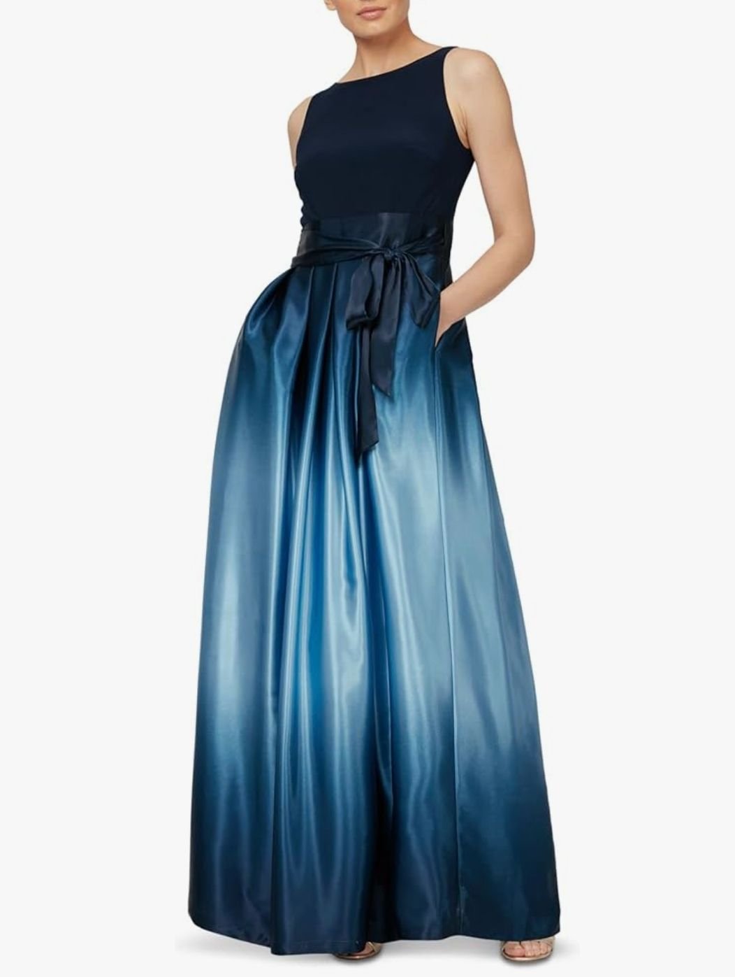 S.L. Fashions Women's Long Satin Mother of The Bride Dress with Pockets, Formal Party Gown (Petite and Regular Sizes).