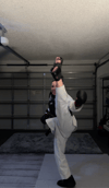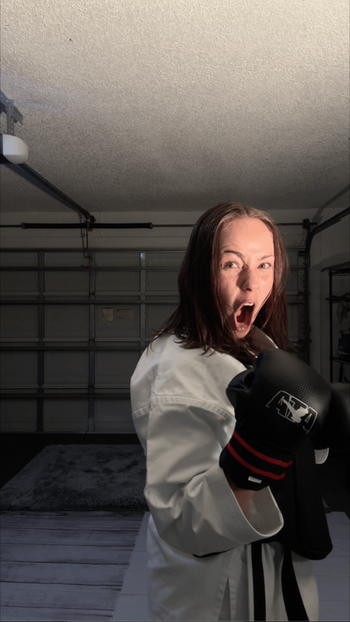 Gear up with me for our 4 minute long sparring match with me wearing my white gi. Fast kicks, strong punches, loud yells and a little sweaty ðŸ¤