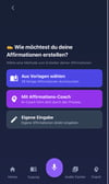 Der integrierte Coach nutzt Dimas bewährtes Wissen und optimiert deine Affirmationen automatisch: Syntax, Feintuning, individuell auf dich zugeschnitten.