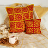 The cushion cover is worked in one piece, in mosaic garter stitch, with attached i-cord edging. Reversing the main colour and the contrasting colour adds visual effect. The pattern is for the front of the cushion cover only. You need a premade cover to sew it on.
