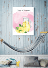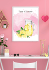 Beautiful Watercolor Digital Print of a Lemonade Pitcher with Lemonade and Lemons on a Pink Background with text “Taste of Summer”-Lovely Summer Printables PDF for Home Decoration or Beach House-Cute Printable Garden Art-Zomer Print-Sommer Druck-L'été