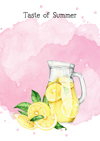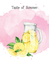 Beautiful watercolor lemonade pitcher image with text "Taste of Summer". For more details please see product images.