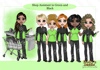 Instant digital download of our Shop Assistant in Green and Black Dolly PNG (100 +PNG’s)