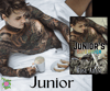 Junior is a member of the SOS MC, a bad boy clad in leather and attitude.