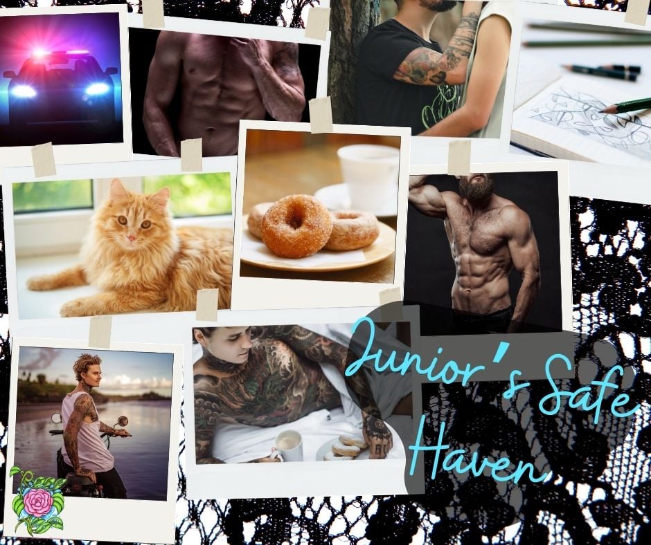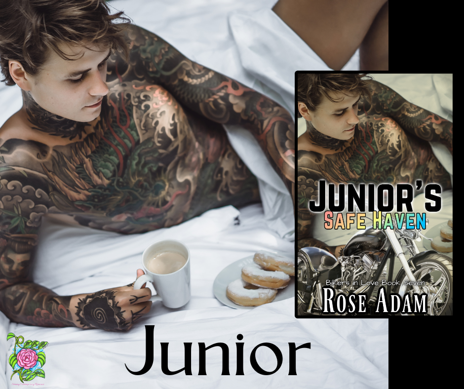 Junior’s Safe Haven is a standalone MM novella with an HEA, part of the SOS MC series.