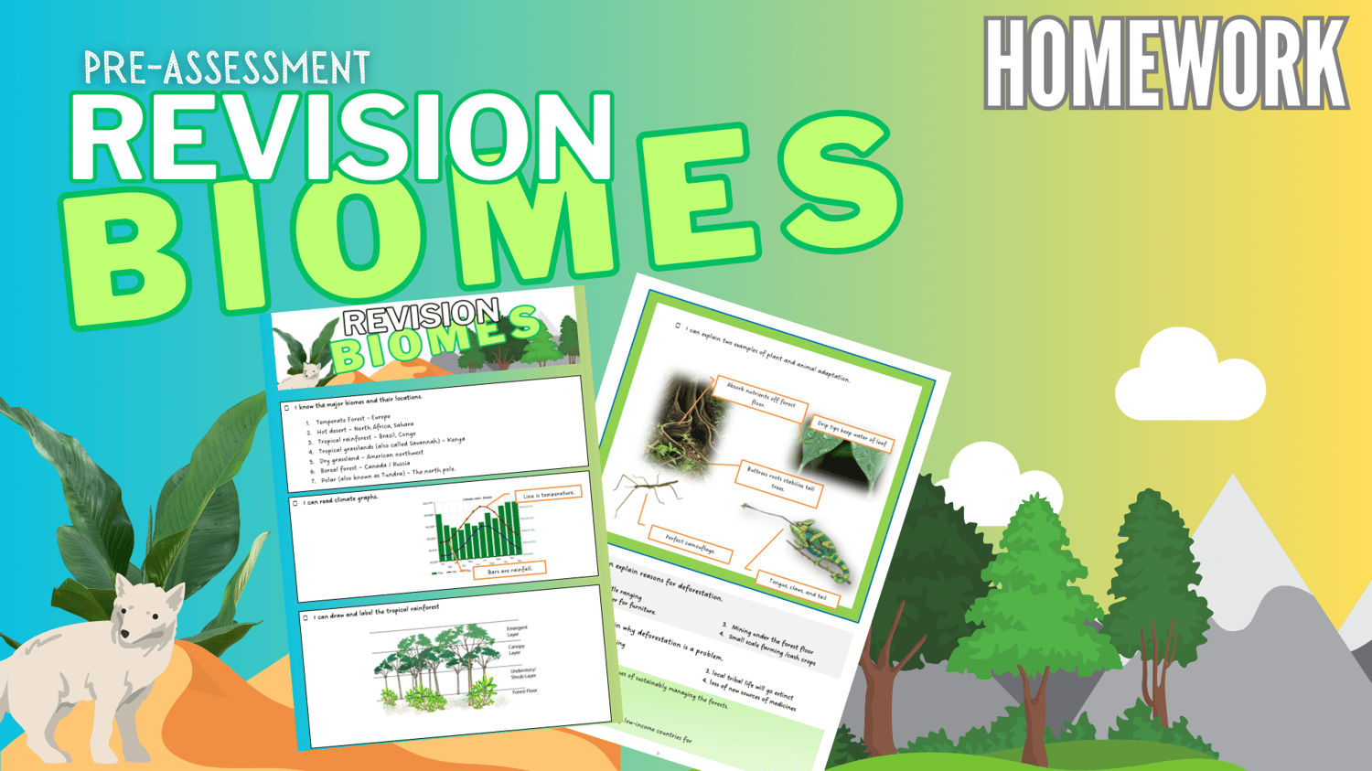 Homework revision sheet for biomes end-of-topic assessment.