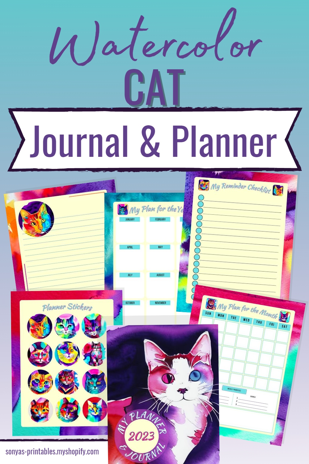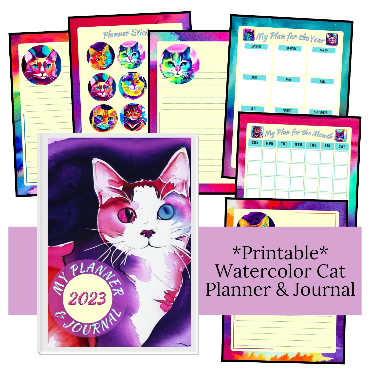 Watercolor Cat Journal And Planner | Watercolor Cat Journal | Watercolor Cat Planner | Instant Download