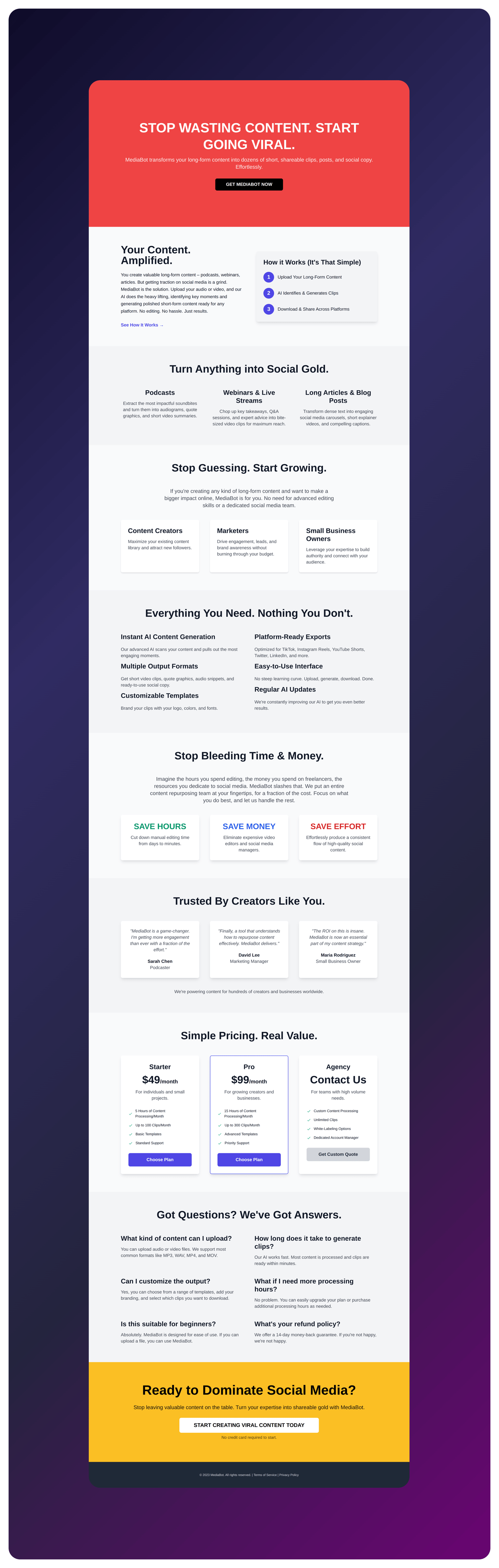 MediaBot — Content Repurposing SaaS Landing Page (Short-Form AI Editing UI)