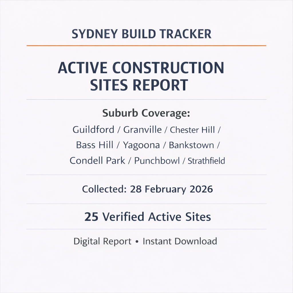 Bankstown District Construction Leads 25 Active Sites | Collected 28 February 2026