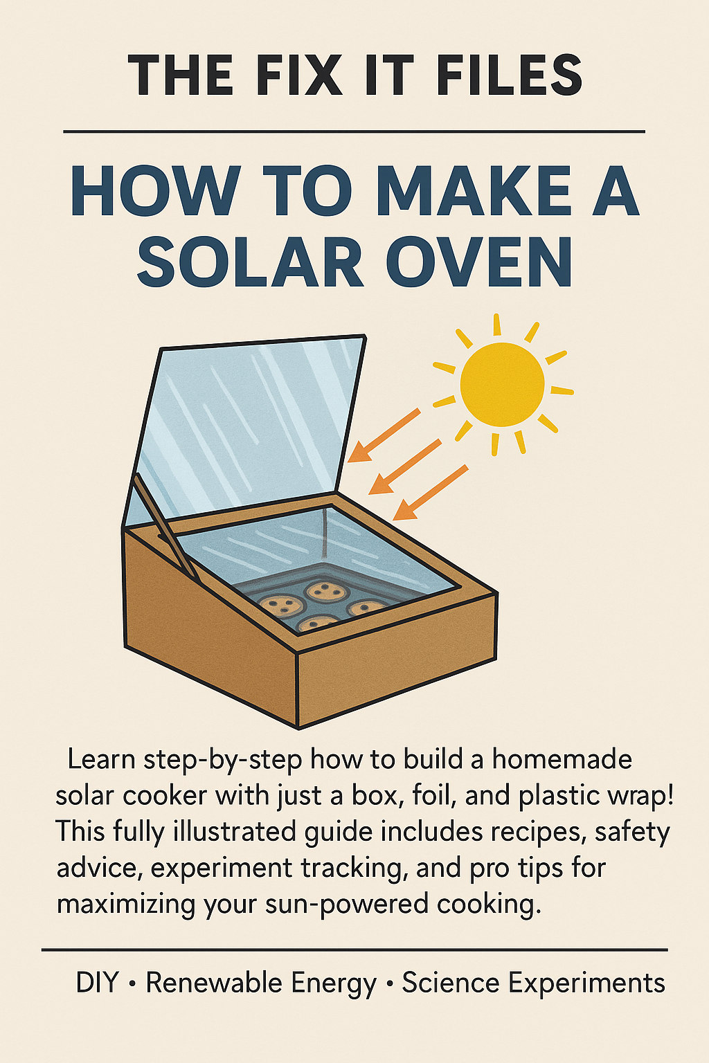 Cook with the power of the sun! This step-by-step guide shows you how to build a homemade solar oven using simple materials like cardboard, foil, and plastic wrap. Perfect for eco-friendly cooking, fun science projects, or emergency preparedness, this solar oven can reach 65–120°C (150–250°F)—enough to melt, bake, and warm food on a sunny day.