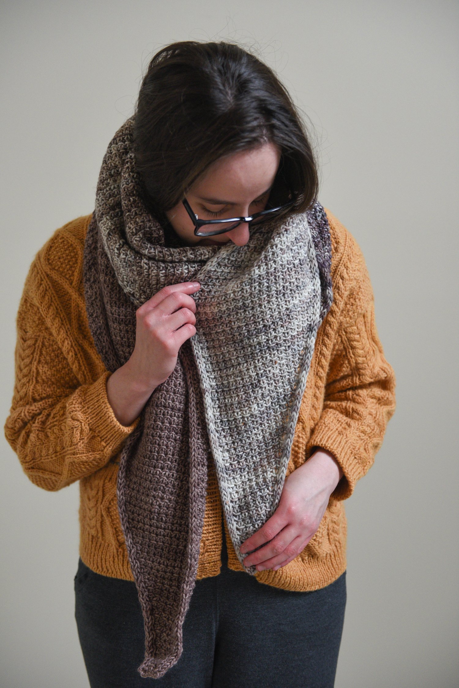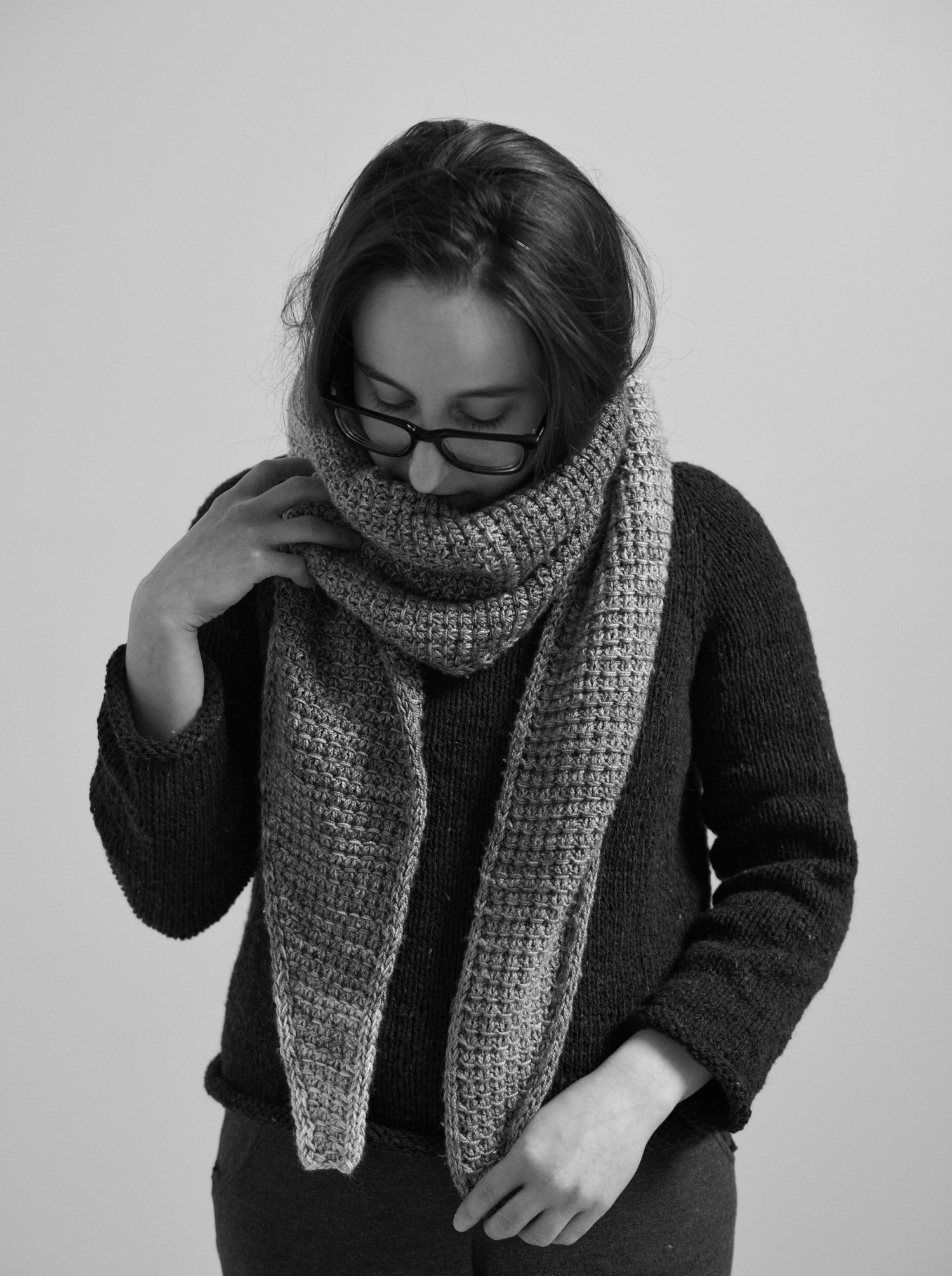 A gently textured slip-stitch design; a simple, repetitive stitch pattern; and a thick and cozy fabric. Within this pattern, you'll find two designs comprised of the same comforting texture - a large, cozy shawl and a quick, neckerchief-sized scarf. I hope you'll enjoy wrapping yourself in the Interthreading Shawl & Scarf.