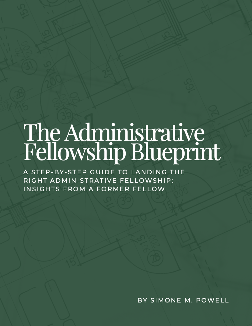 The Administrative Fellowship Blueprint is a step-by-step resource guide to identify, apply for, and land the best administrative fellowship for you. Whether you’re just curious about what an Administrative Fellowship is or you’re preparing to be knee-deep in applications, this guide is built to give you clarity, strategy, and a boost of confidence along the way!