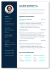 Le modèle de CV Data Scientist au design moderne et original véhicule l'image d'un candidat sérieux et compétent. C'est un modèle de CV professionnel qui met bien en valeur le profil du candidat, ses expériences professionnelles ainsi que ses compétences informatiques. C'est un CV qui fonctionne très bien auprès des recruteurs.