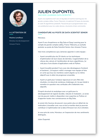 Ce template de CV vous permettra de vous démarquer des autres candidats et de sortir du lot. Simple à utiliser, prérempli et modifiable afin de vous aider à rédiger votre CV rapidement.