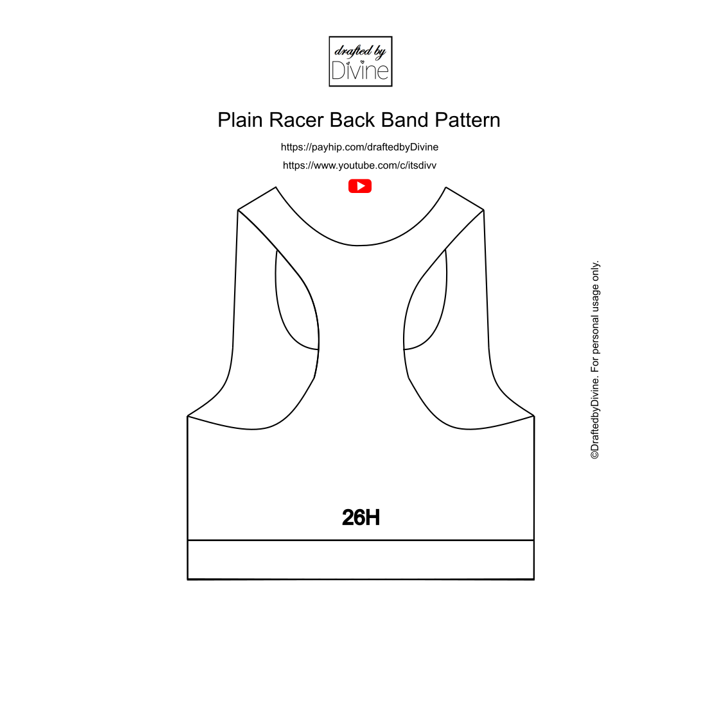 26H Plain Racer Back Band Pattern For 26" Underbust Measurement