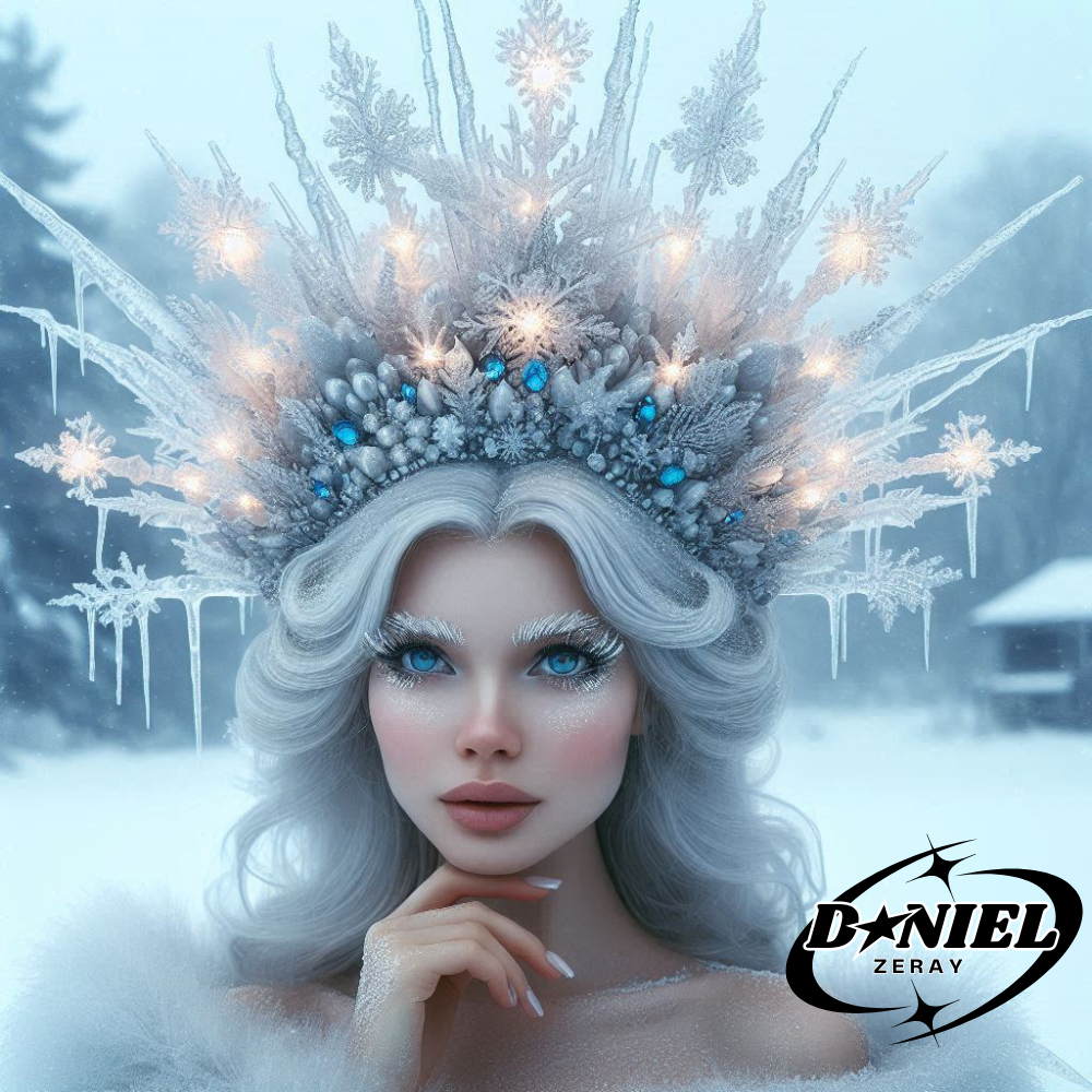 Behold the icy majesty of "The Arctic Crown of the Winter Empress," an awe-inspiring artwork that captures the serene power of winter’s sovereign. Set on a windswept tundra blanketed in sparkling snow, the ethereal Winter Empress commands attention from her throne, sculpted from cascading frozen waterfalls. Her crown, an intricate creation of intertwining ice and glowing frost, emits a calming aura that tames even the fiercest of winter storms.