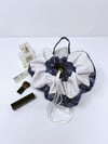 Stay organized and stylish with this elegant handmade drawstring makeup bag. Featuring a stunning navy feather print and soft interior, this bag opens flat for easy access to all your beauty essentials and cinches into a compact pouch when you're done. Lightweight and perfect for travel, it keeps your cosmetics neatly contained with a touch of sophistication.