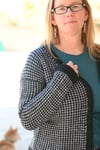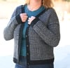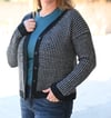 The cardigan features a classic two-color houndstooth pattern that’s surprisingly easy (each row is worked in only one color).