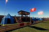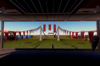 - Spectator area Large enclosed arena, with blue and red team on opposite sides.