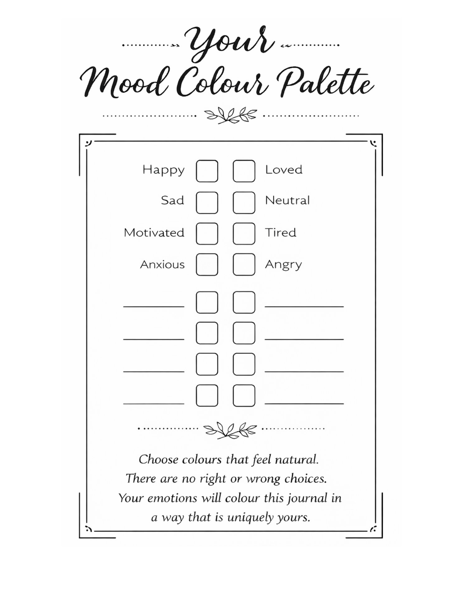 Choose your own colours for each mood to create a journal that is uniquely yours.