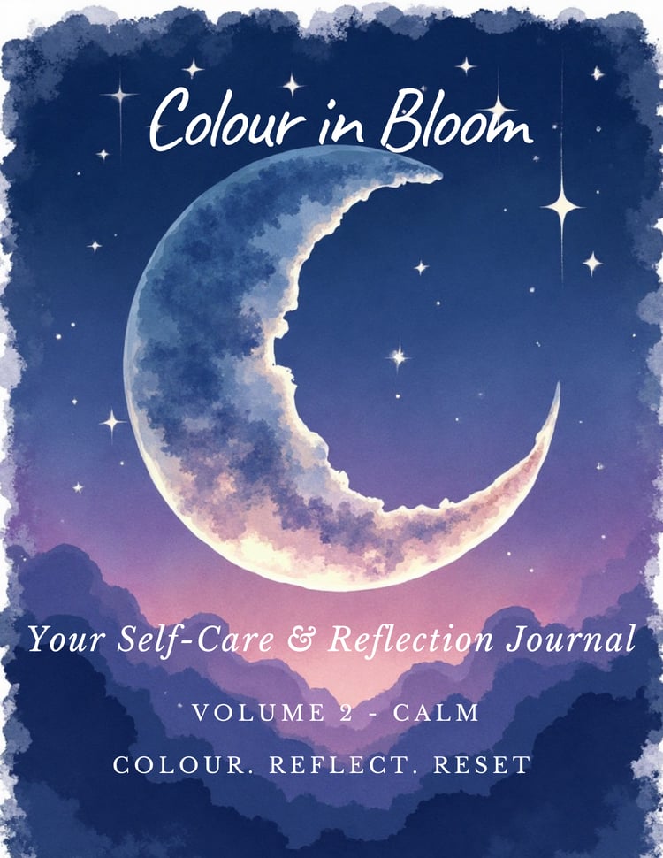 Colour in Bloom is a gentle self-care journal designed to help you reflect on your emotions through colouring, writing, and mindful planning.