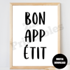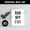 Bon Appetit Print Kitchen Chef Decor Cooking Wall Art French Food Quote Poster White Black Trendy Typography Printable Digital Download JPEG