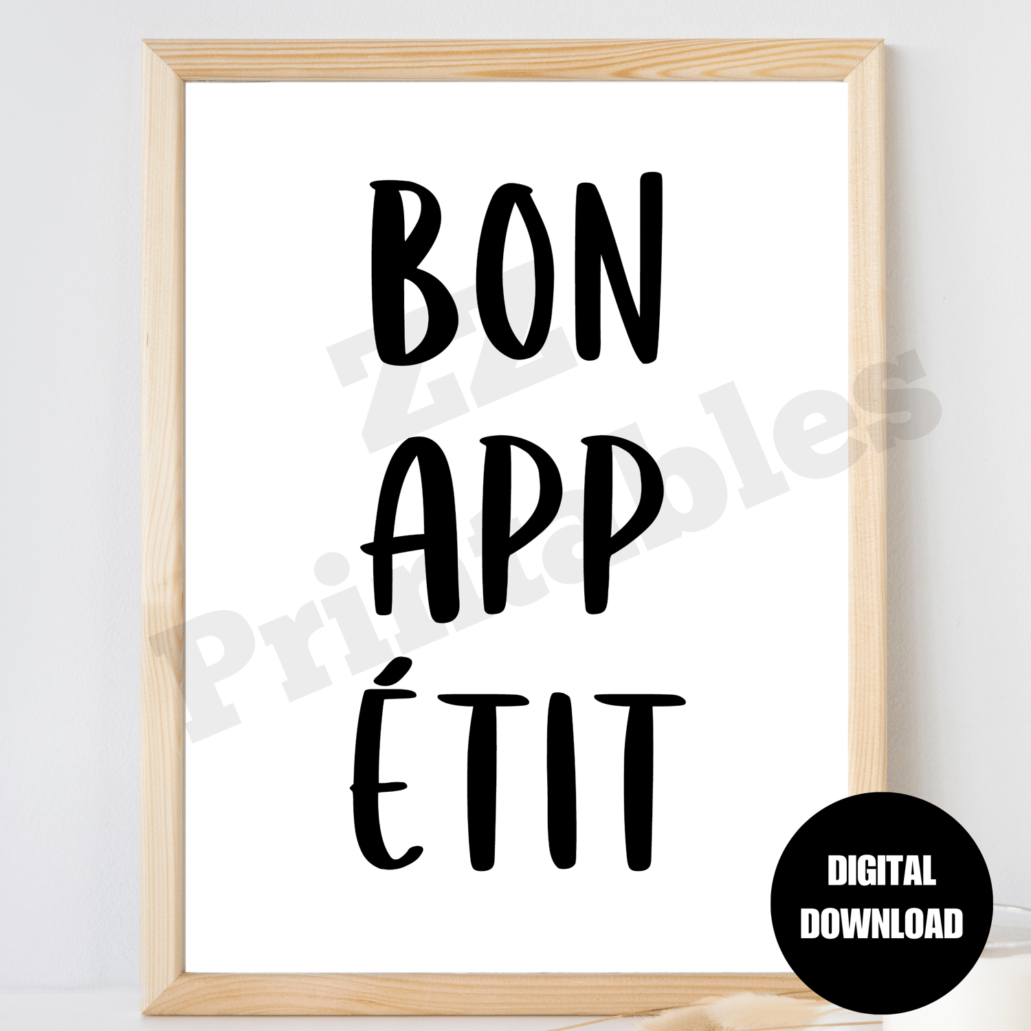 Bon Appetit Print Kitchen Chef Decor Cooking Wall Art French Food Quote Poster White Black Trendy Typography Printable Digital Download JPEG. The design comes in 5 different sizes. The digital download consists of a zipped file containing 5 high quality JPEG files (300 dpi) and a PDF size chart to help you choose the right file for the printing size you want.