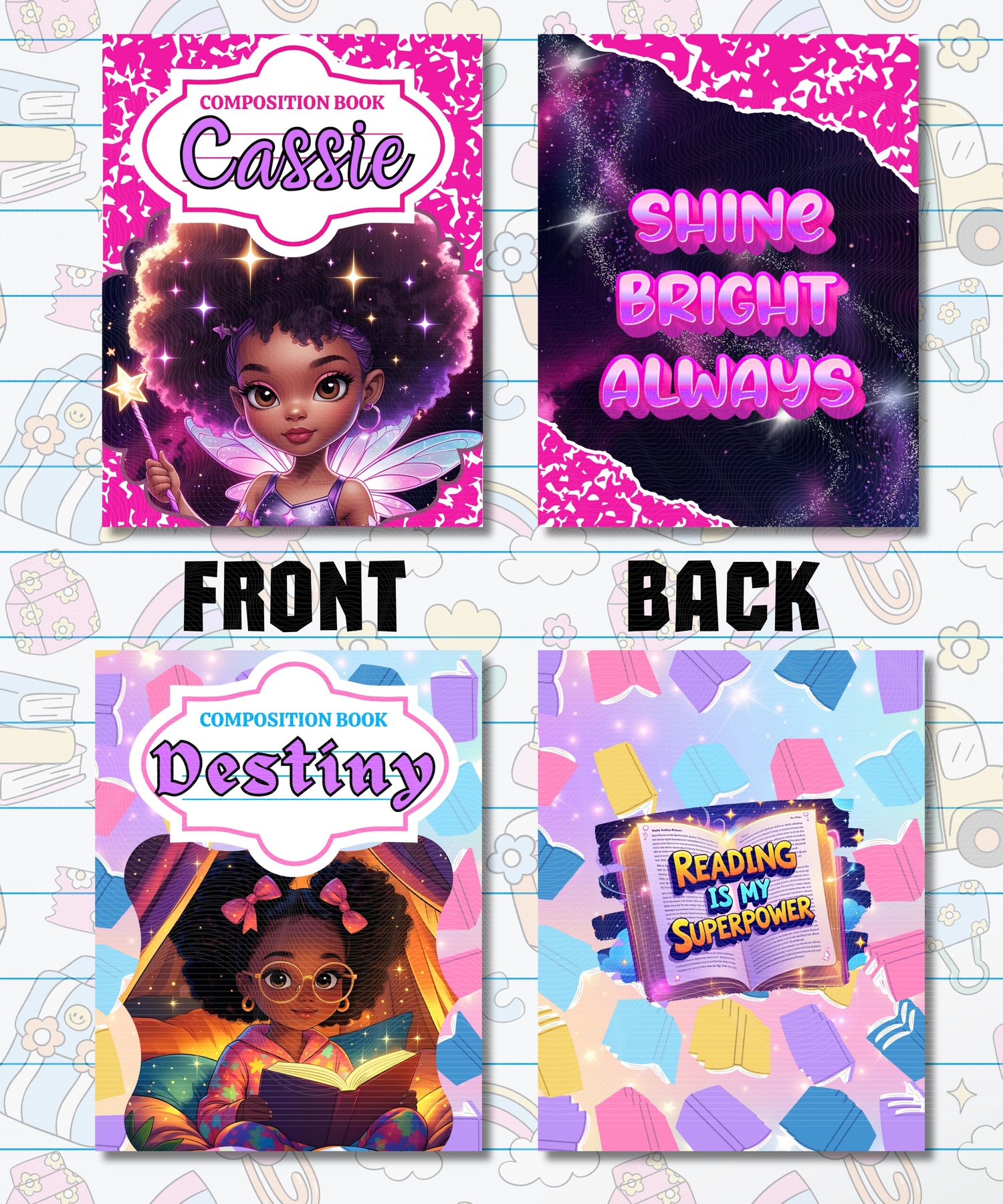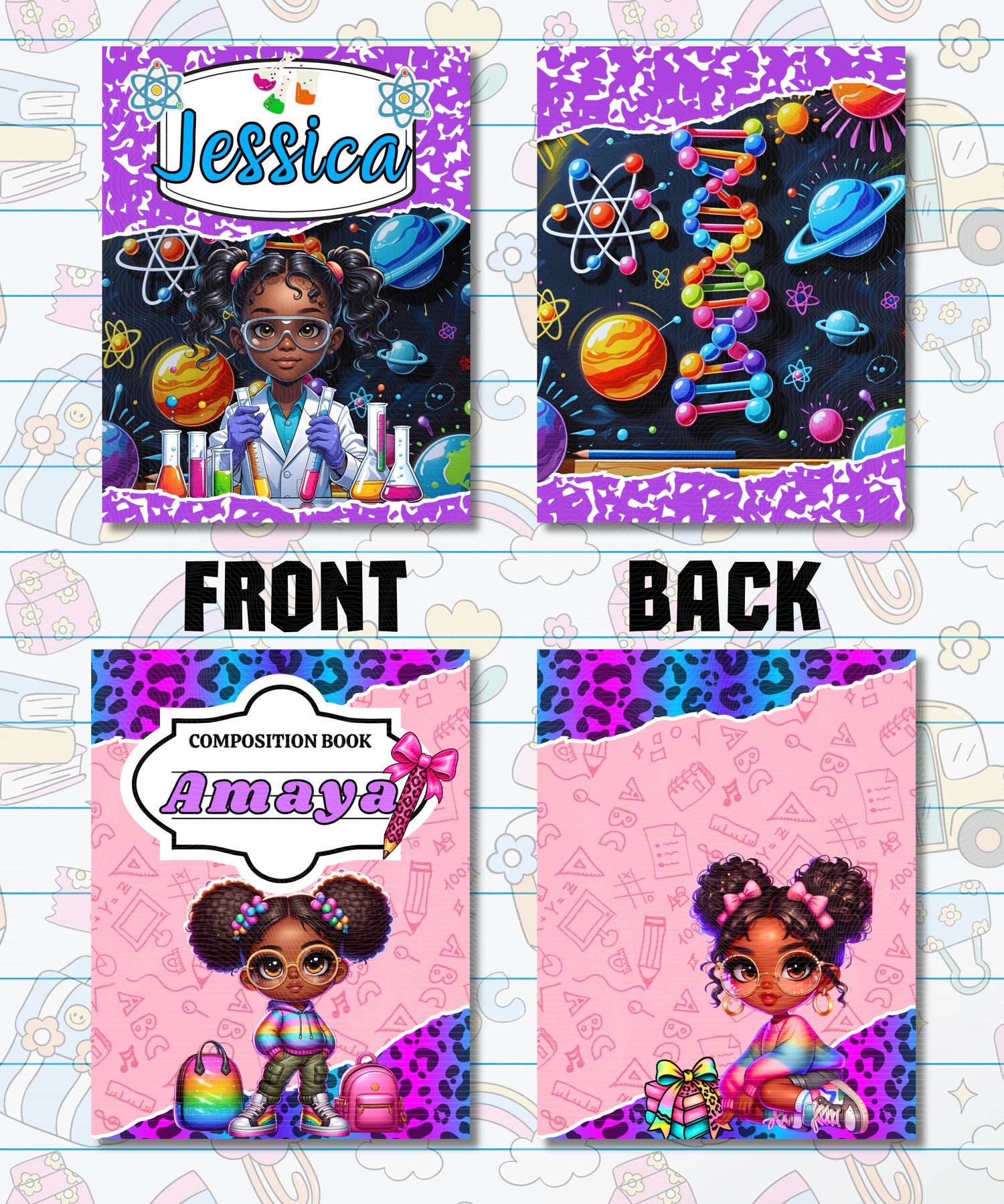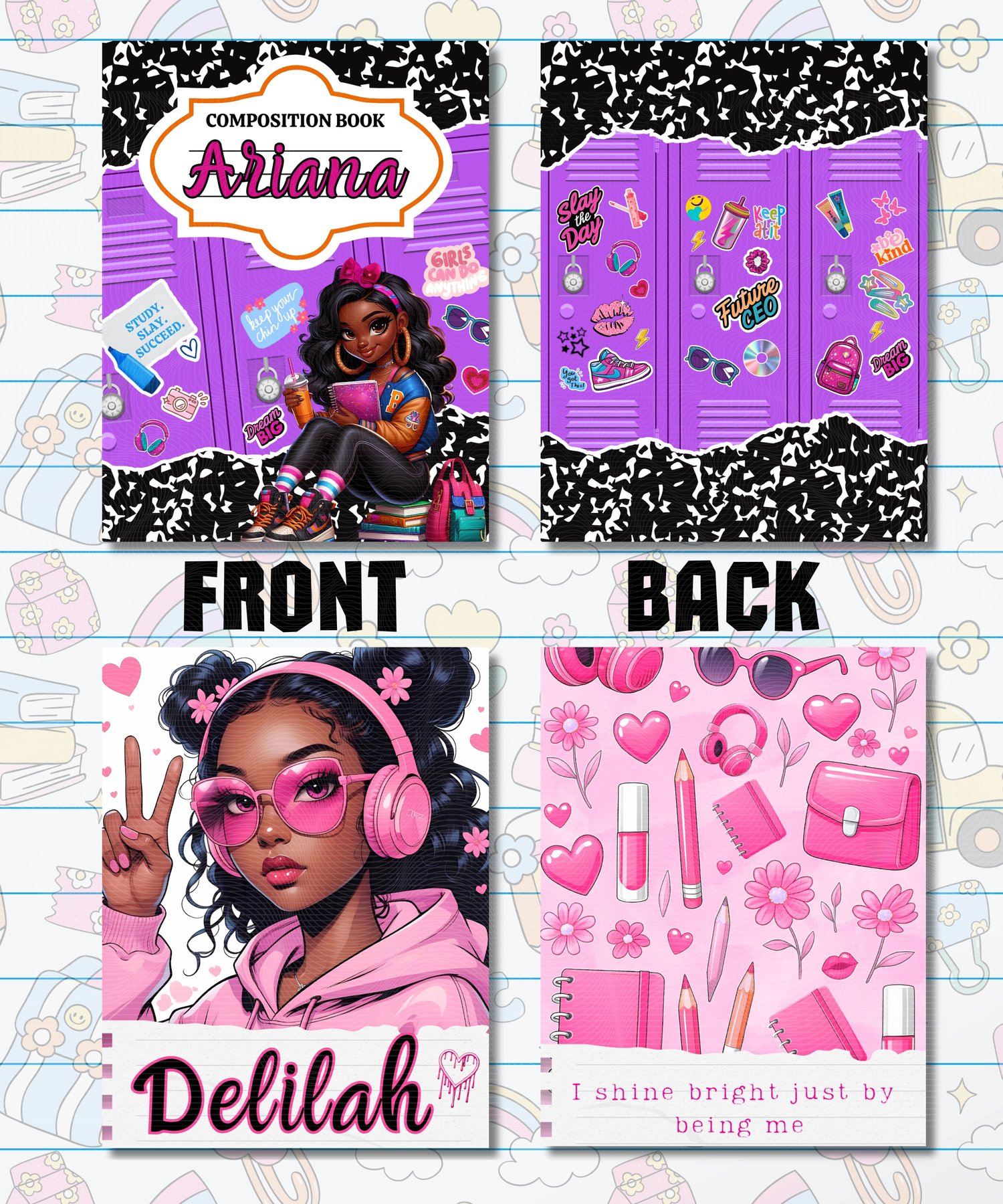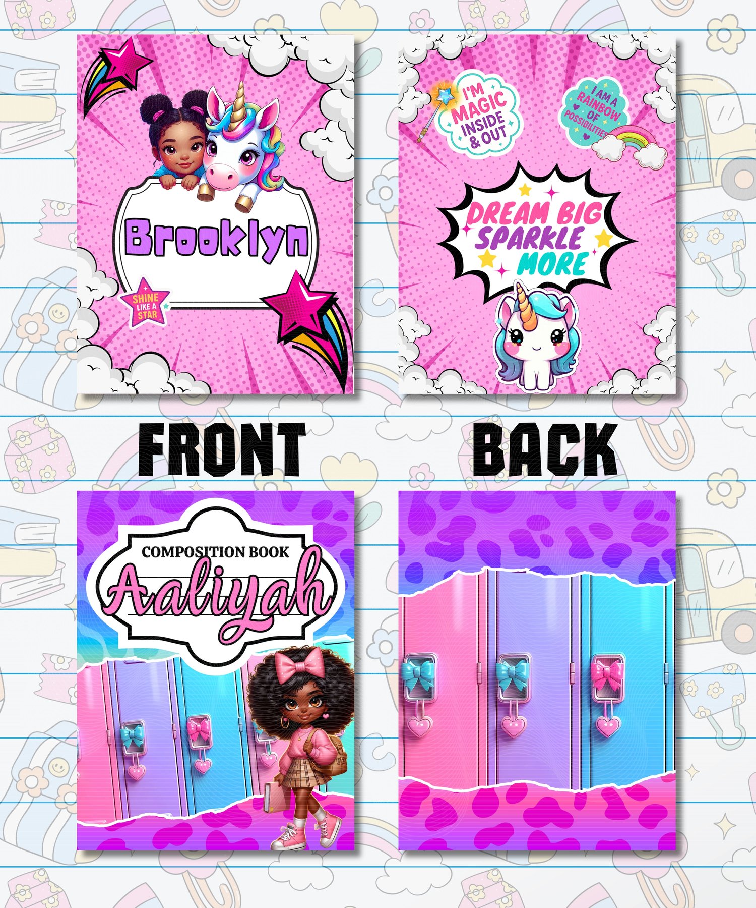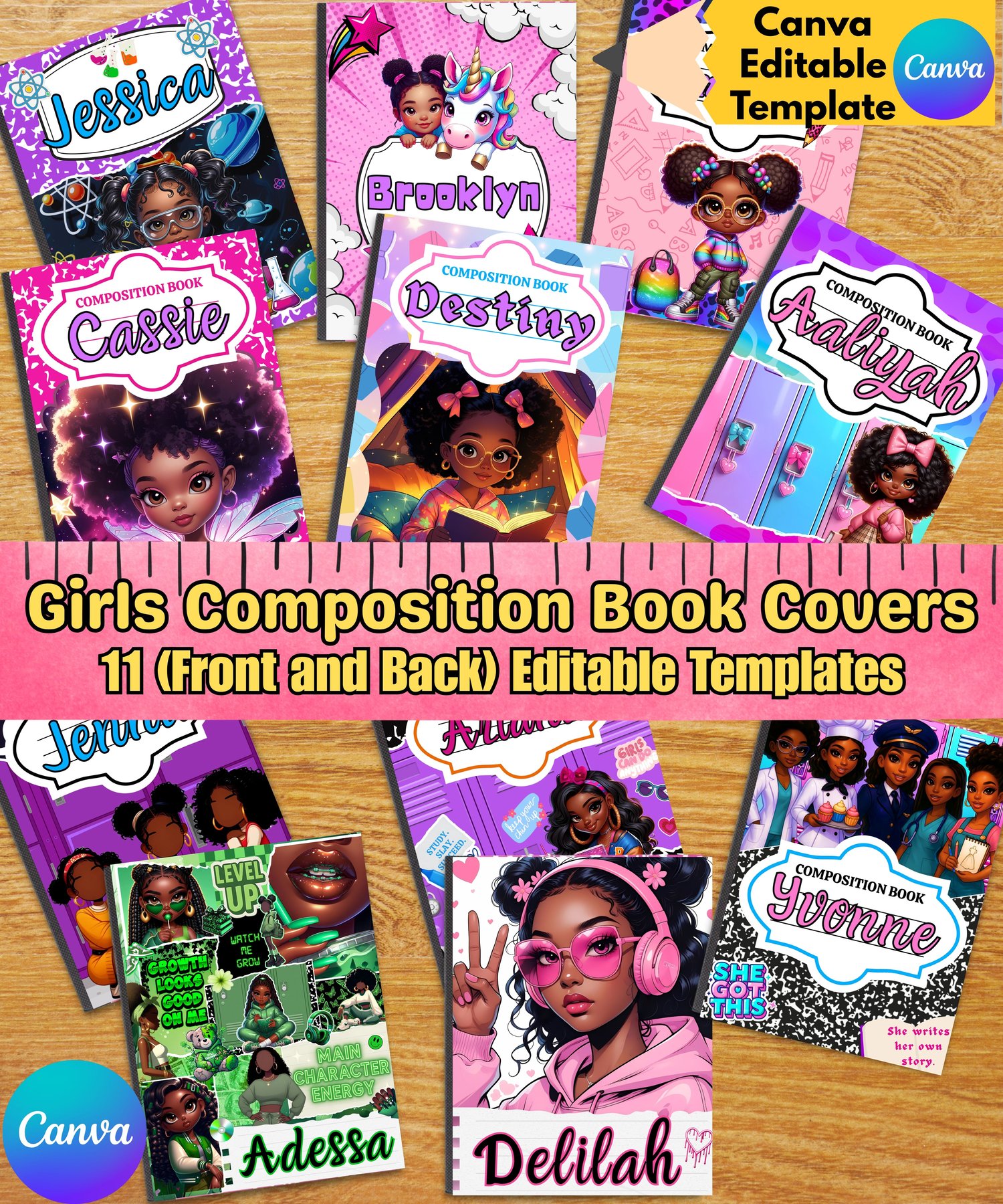 Girls Composition Book Covers – 11 (Front + Back!) Editable Canva Templates