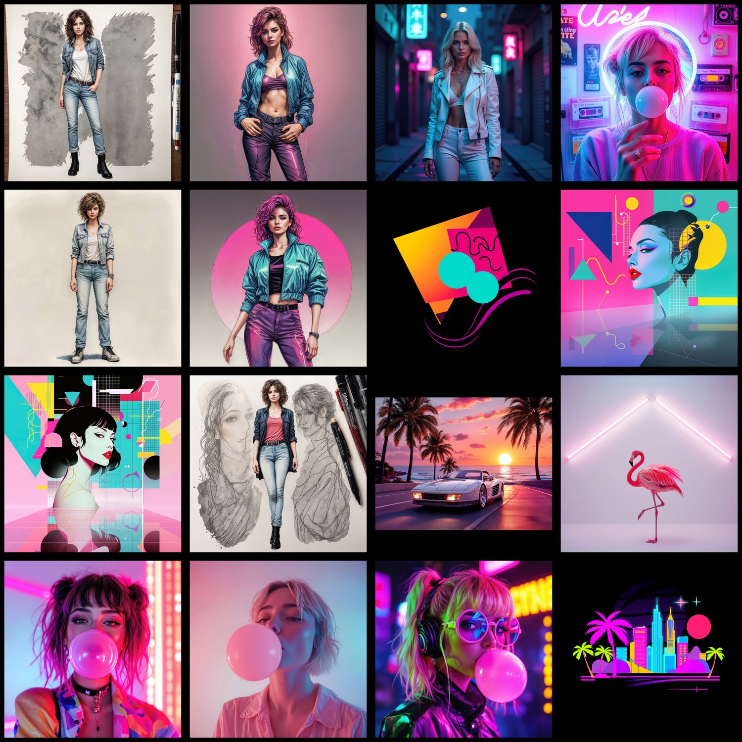 Relive the iconic era of the 1980s through our Nostalgia collection! This bundle includes 93 high-resolution artworks (4000px, 300 DPI) perfect for album covers, book covers, YouTube thumbnails, social media graphics, and print projects.