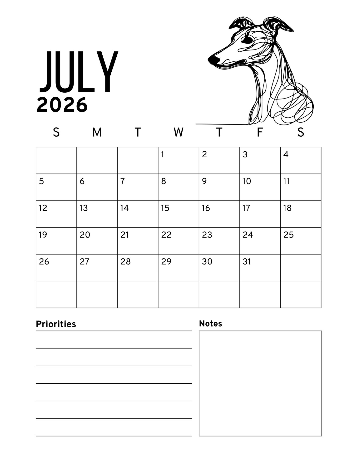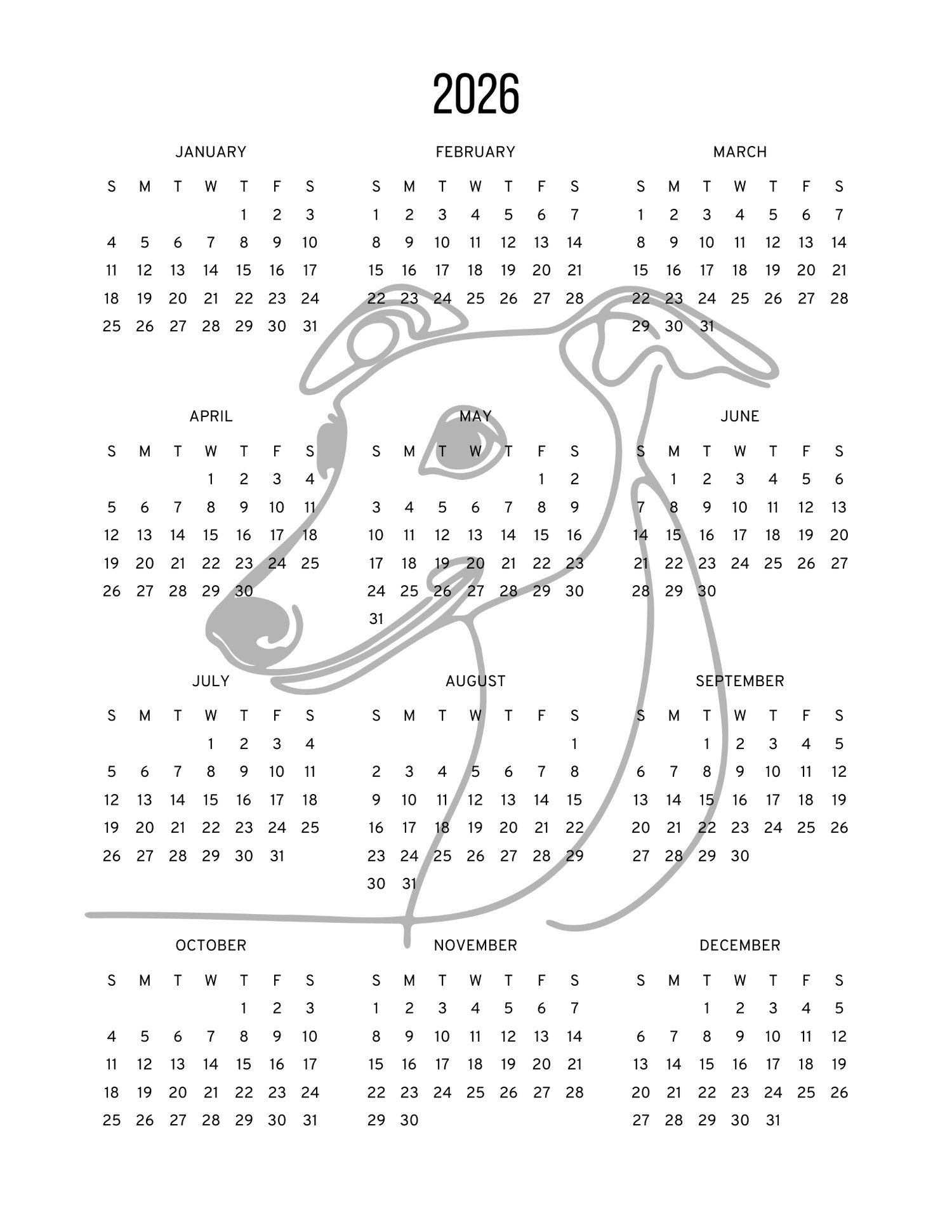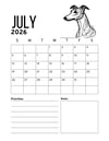 2026.WHIPPET PRINTABLE CALENDAR