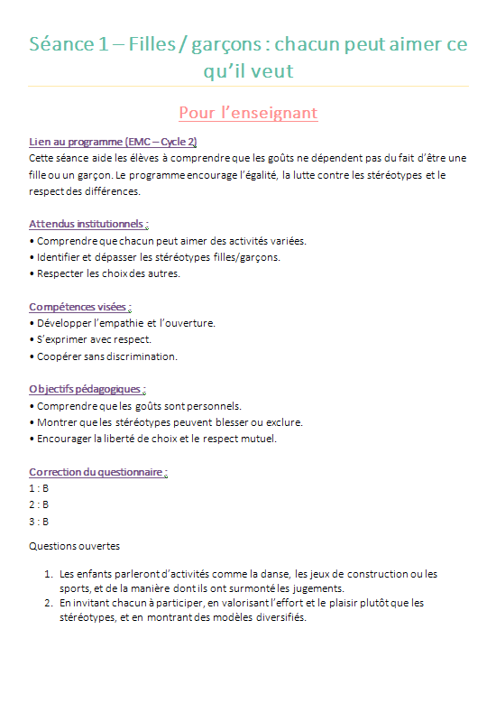 L’extrait fourni correspond à une séance complète, idéale pour découvrir le format de la ressource et la dynamique proposée en classe.