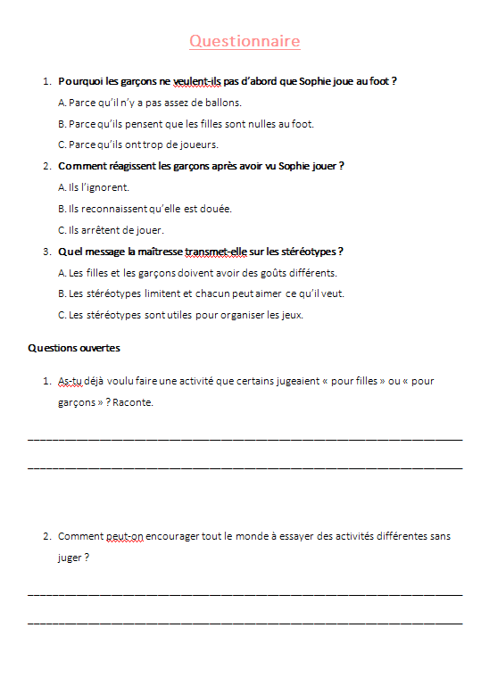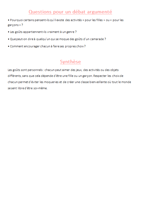 ✔ Comprendre que les goûts et activités ne dépendent pas du genre