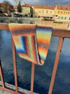 Ezt a darabot úgy terveztem, hogy a színátmenetes fonalak adottságait jobban kihasználva, ne egy egyszerű, csíkos sál legyen a végeredmény, hanem izgalmasabb, egyedibb és trendi nyakbavalónk lehessen. A lustakötés mindkét oldalán használhatóvá teszi, ez is hasznos.