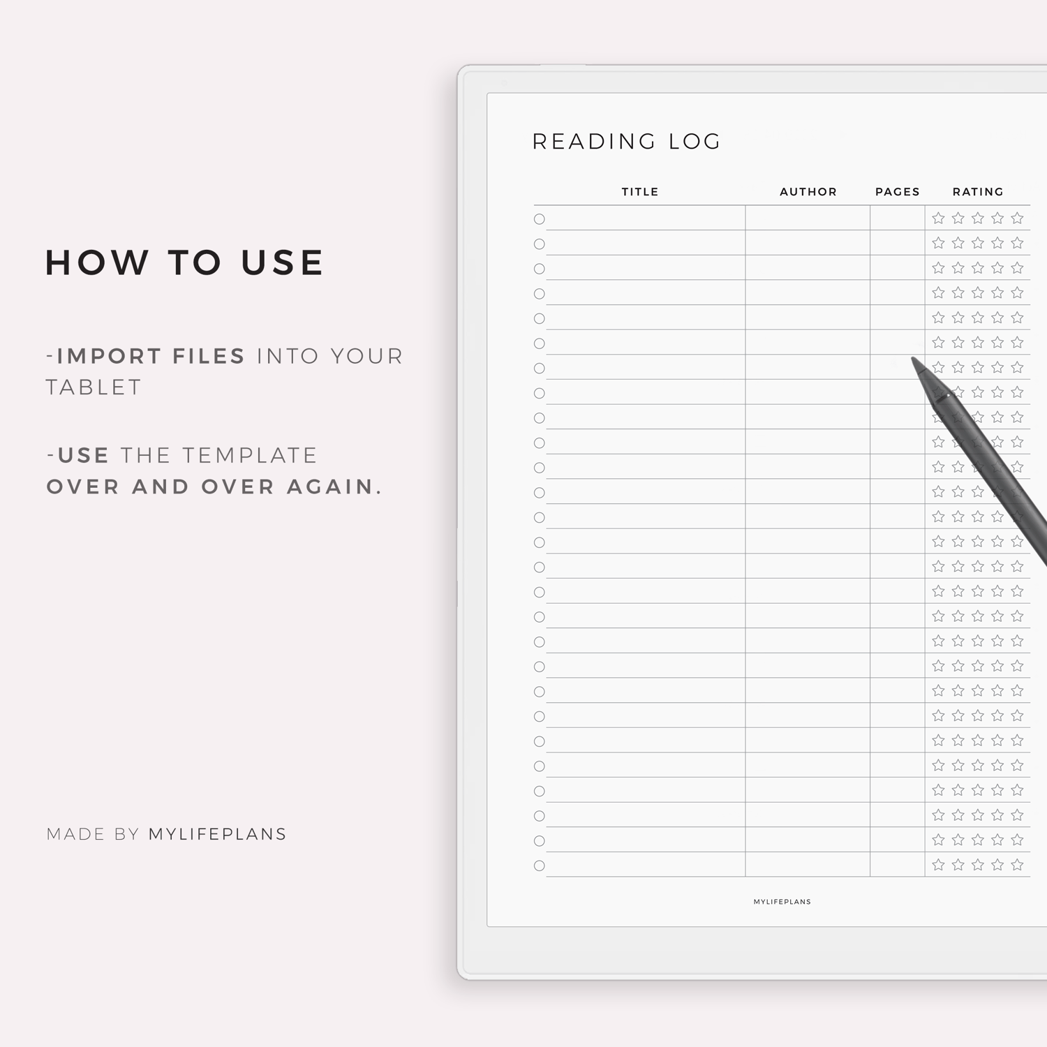 Reading Log Template for Remarkable, Supernote, Kindle Scribe, Boox, Kobo