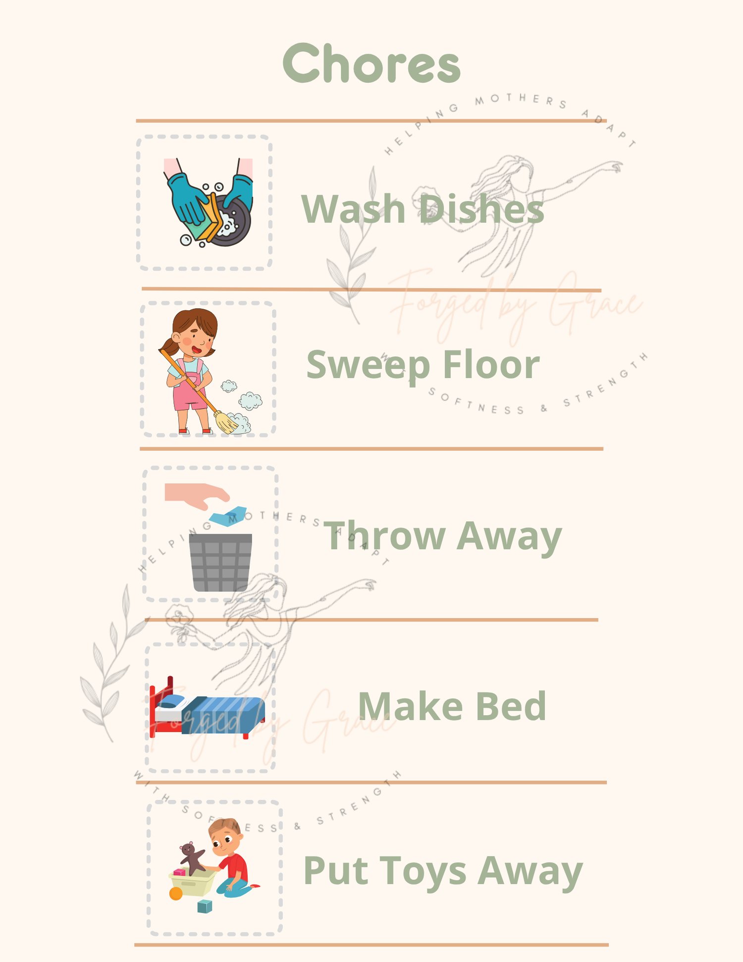 Chores don’t have to be a fight — they can be a foundation for confidence. This Chores Routine Chart helps your child learn responsibility step-by-step with visual cues that make cleanup feel doable, not overwhelming.