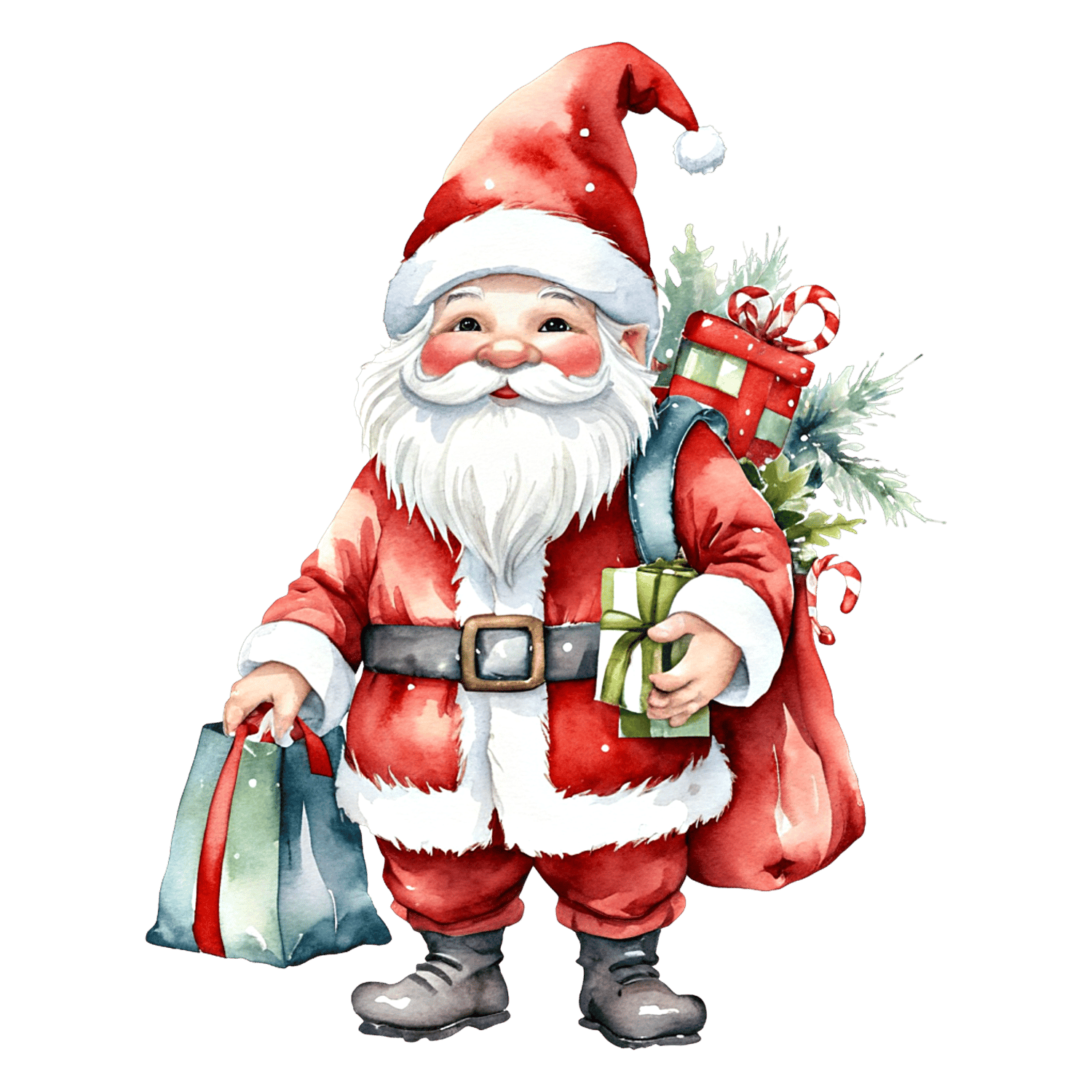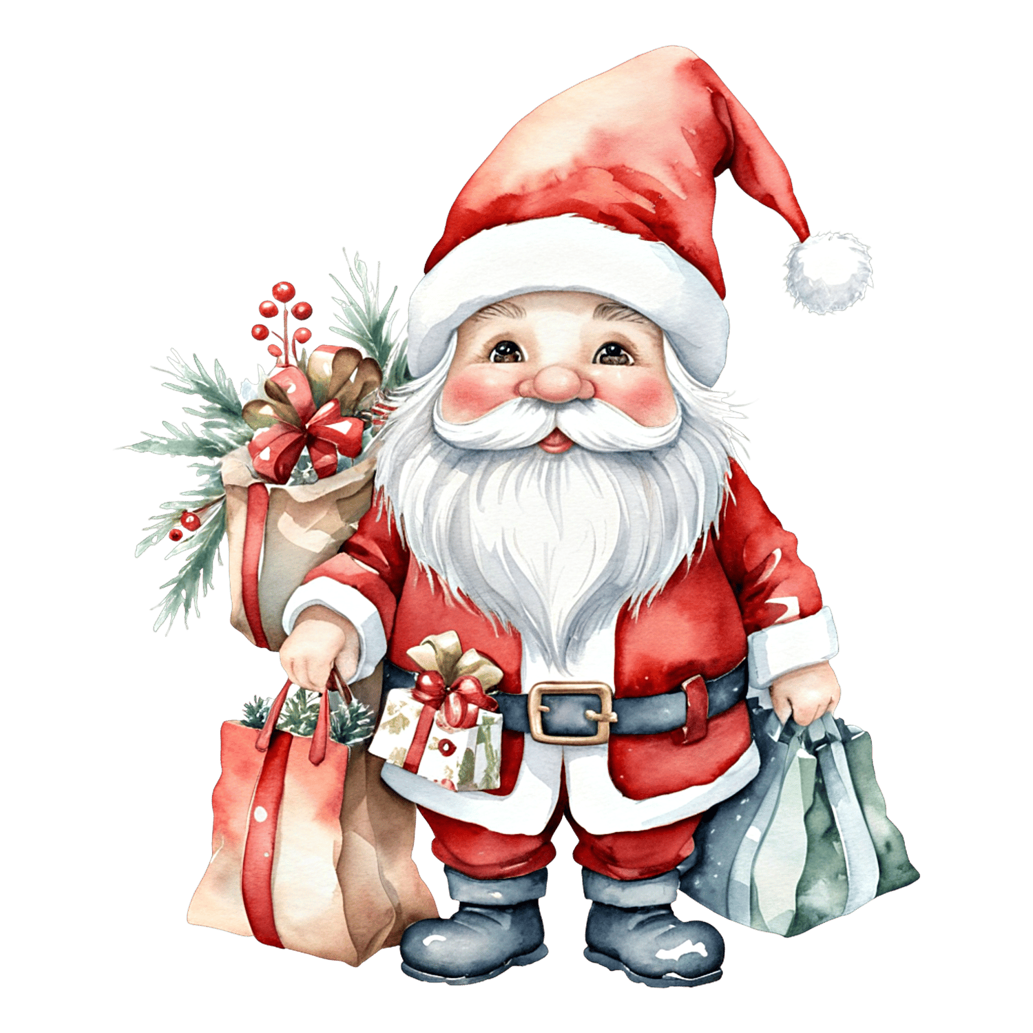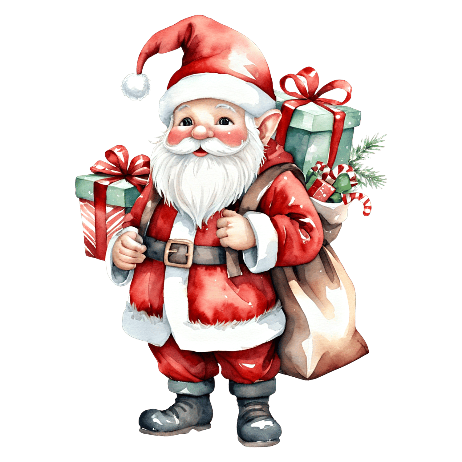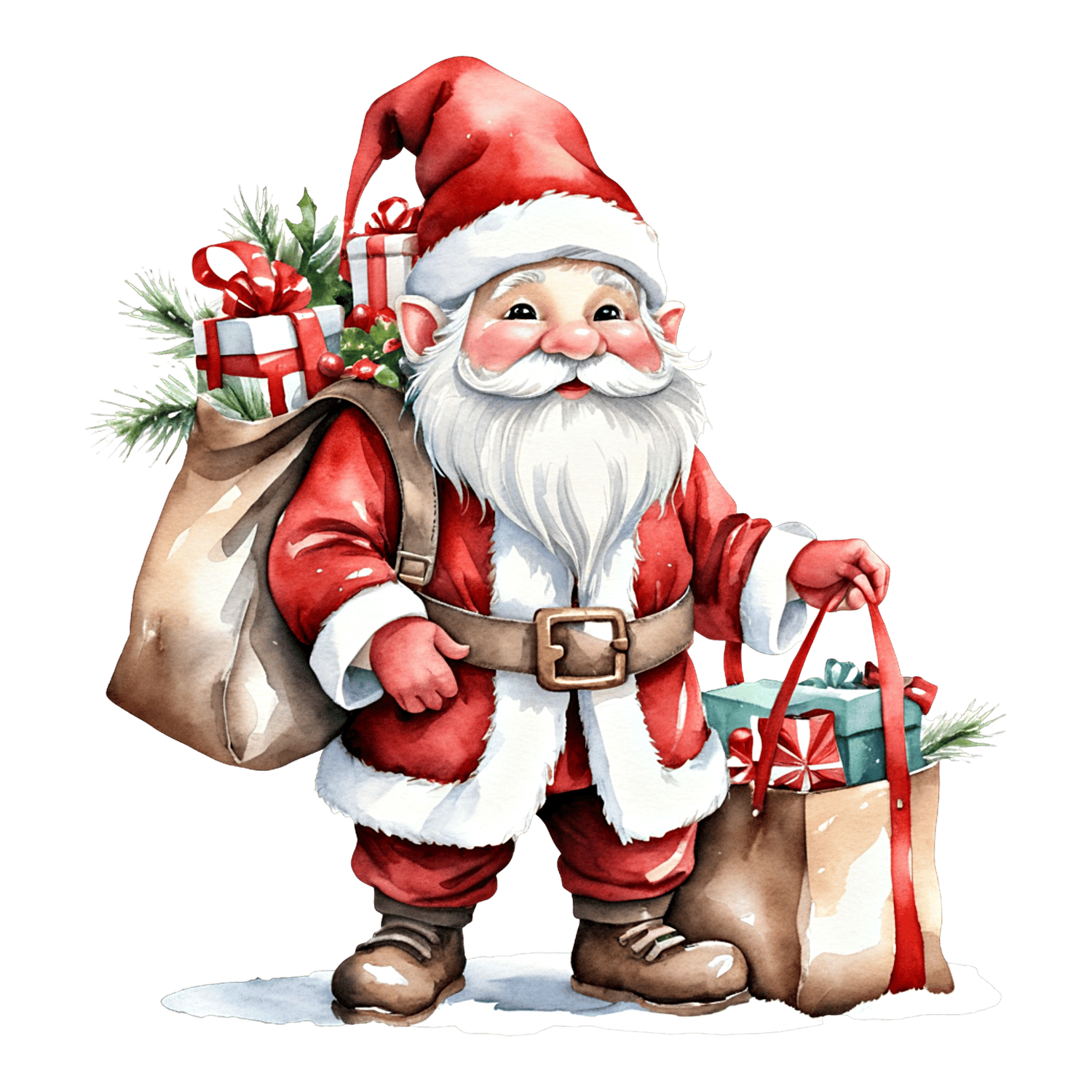 Transform your creative projects with our "Watercolor Santa Clipart" collection! This digital pack includes 9 unique and whimsical images, each in PNG Transparent format at resolution of 96 dpi and 2048 x 2048 px.