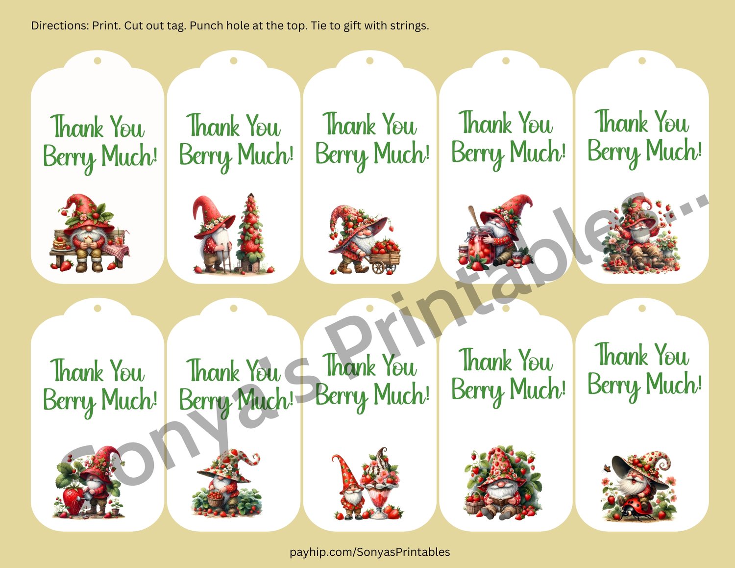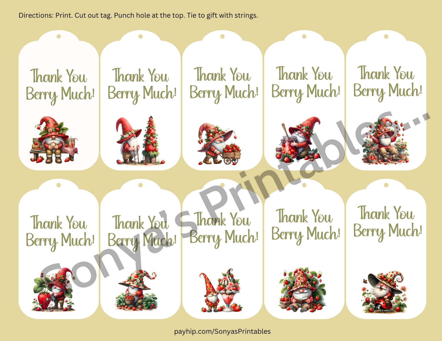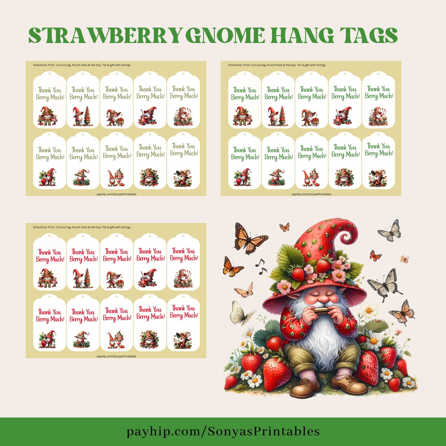 Strawberry Gnome Hang Tags | Summer Gnome Gift Tags | Strawberry Gnome Favor Bag | Summer Gnome Treat Bag Tags