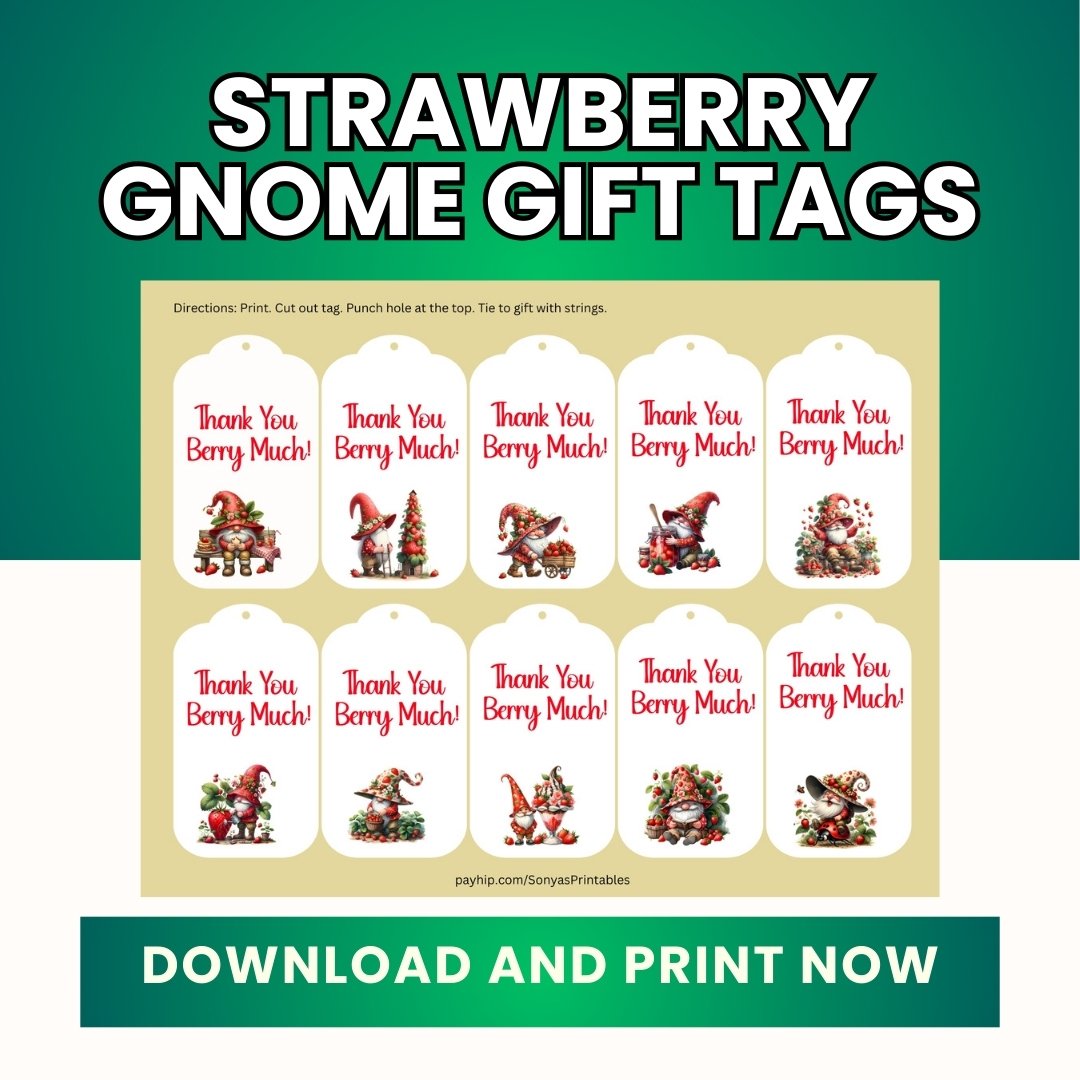 So why settle for boring gift tags when you can have these delightful ones instead? Download, print, and enjoy spreading smiles wherever your gifts go. Get your Printable Strawberry Gnome Hang Tags today and make your presents pop!